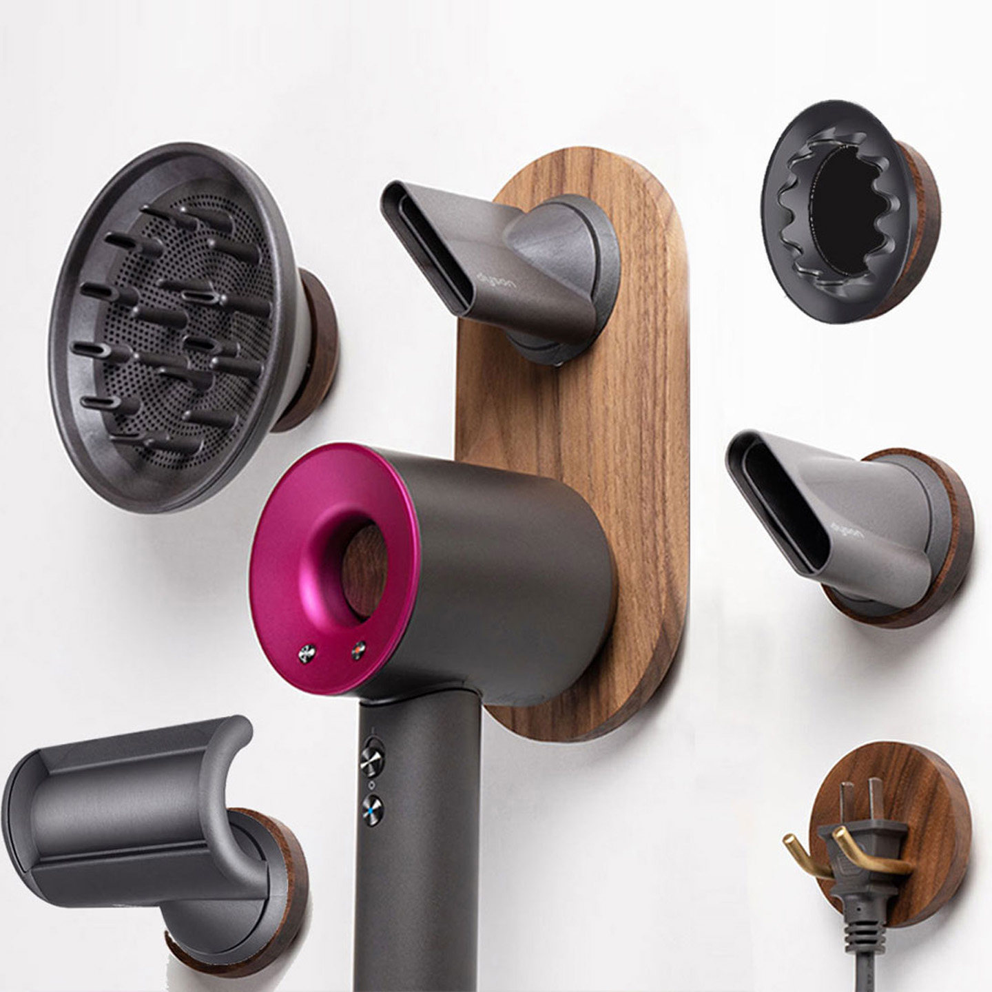 卫生间胡桃木吹风机置物架吸盘免打孔可拆洗漱台洗脸巾吹风机架子