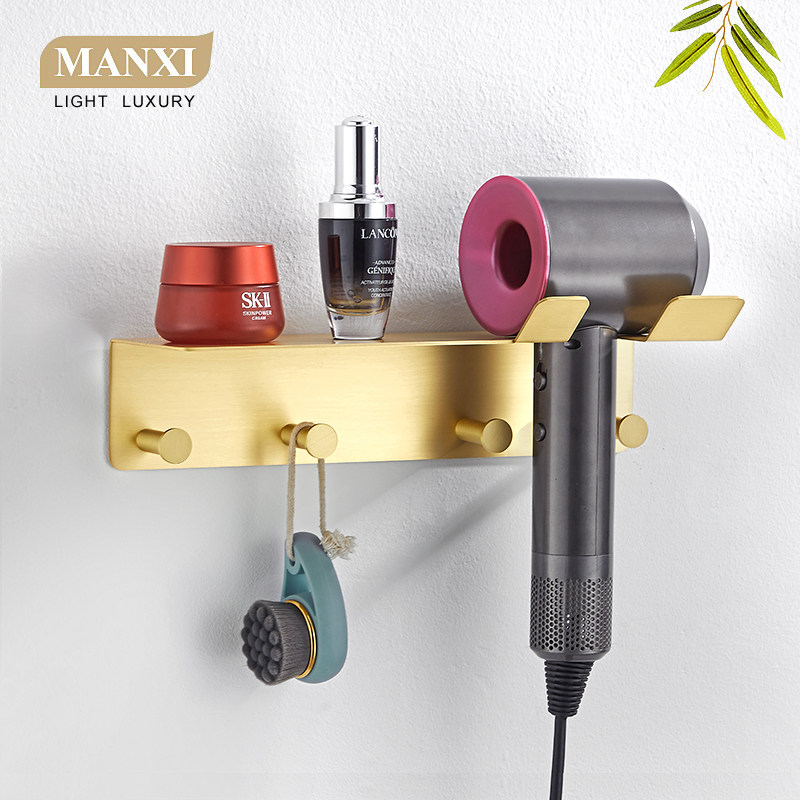 全铜吹风机架子卫生间置物架壁挂式浴室墙上吹风筒收纳挂架免打孔