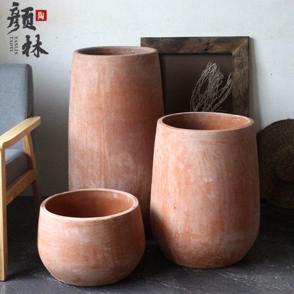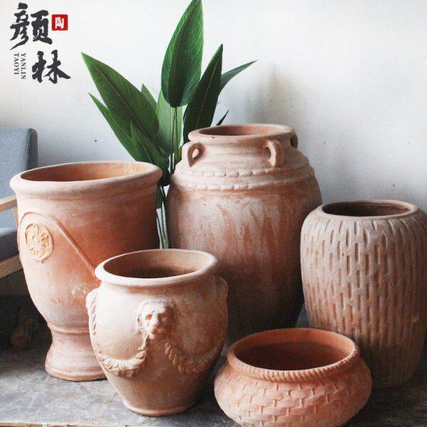 包邮庭院大号陶罐景观土陶粗陶红陶花盆花瓶无釉庭院透气大码陶盆