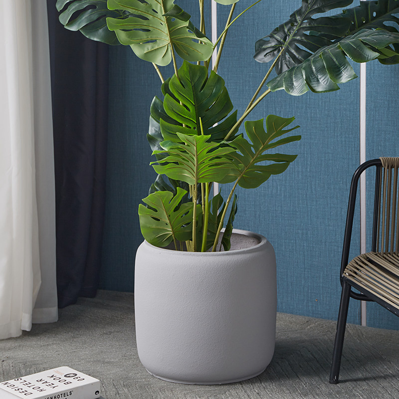 矮胖圆形水泥花盆阳台盆景透气落地客厅白色黑色大码超大大理石盆