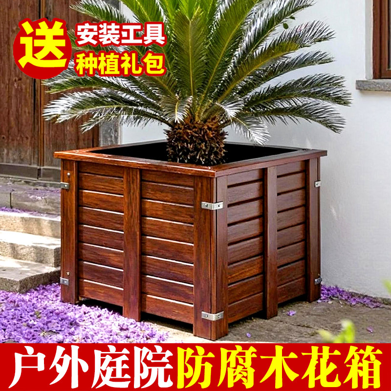 防腐木花箱种树大码特大实木加厚种植箱户外庭院专用大号别墅花盆