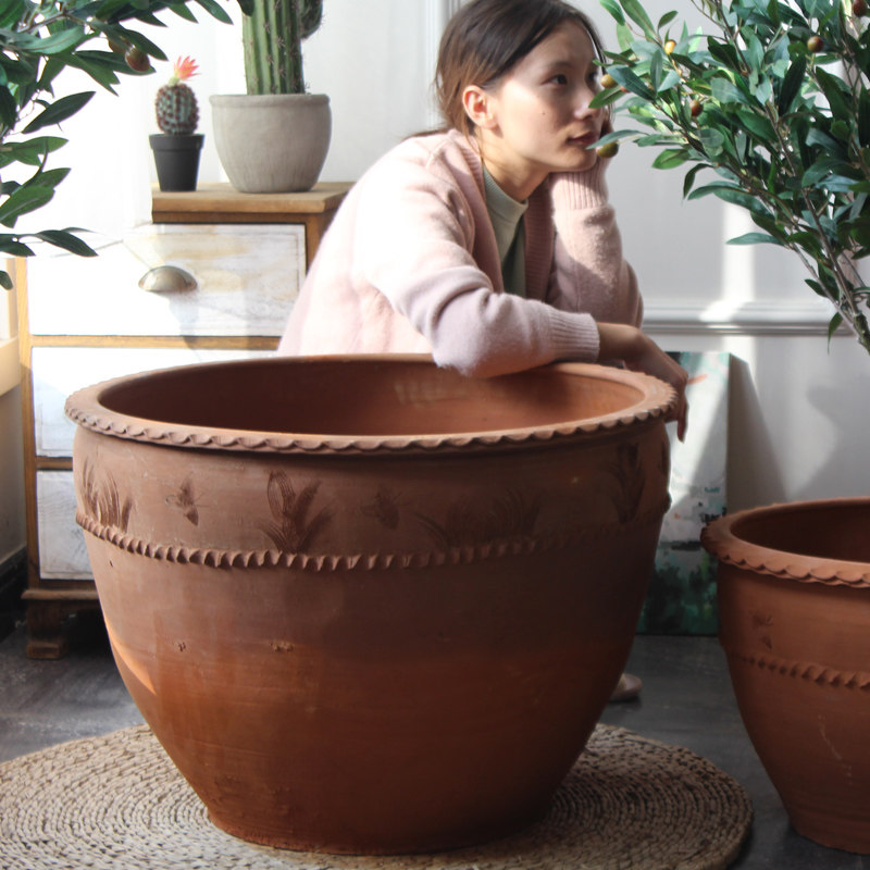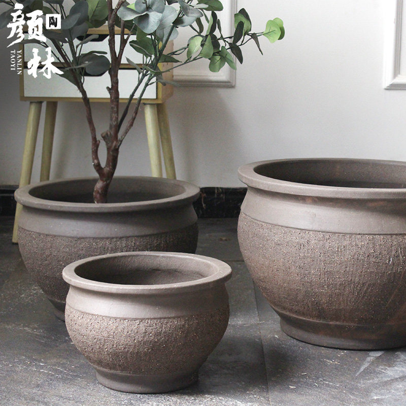 大口盆缸陶缸盆土陶缸养鱼盆睡莲盆缸花盆大口径荷花盆大码北欧风