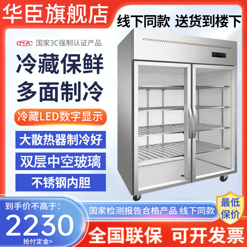 新飞冷藏柜商用厨房四门冰箱麻辣烫展示柜冷藏保鲜冰柜双门点菜柜