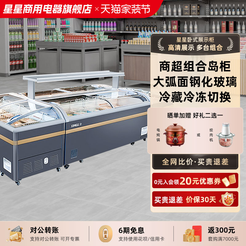 星星冰柜岛柜商用展示柜冷藏冷冻超市商店卧式组合冷冻柜709BYE