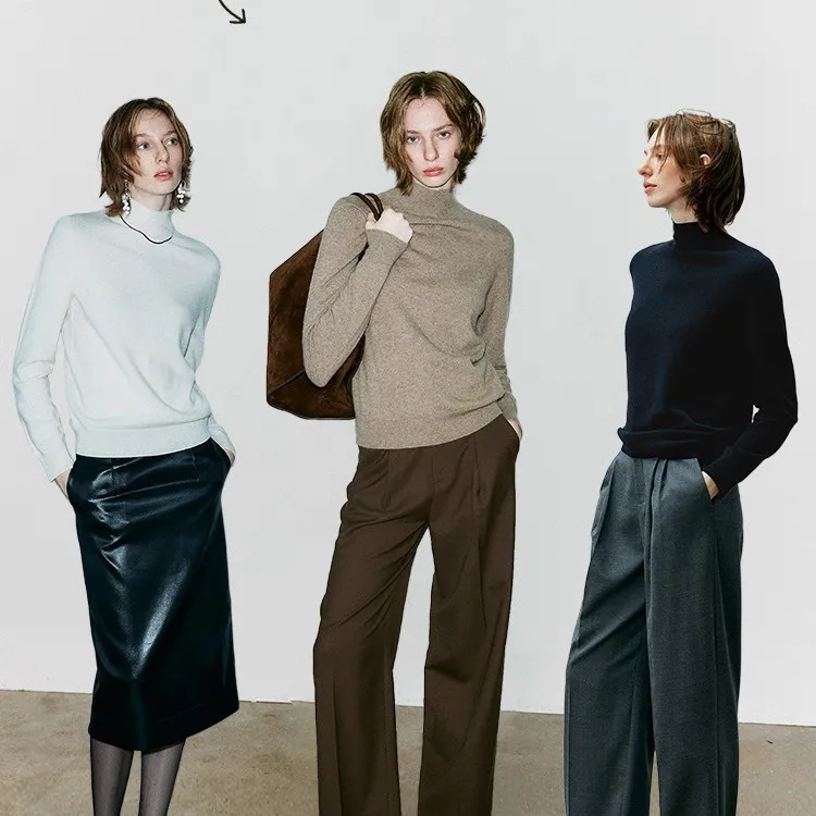 鄂尔多斯市羊绒衫女秋冬半高领修身内搭打底针织衫毛衣新款羊毛衫