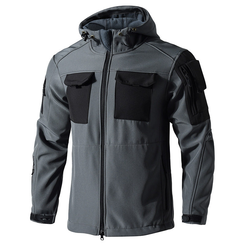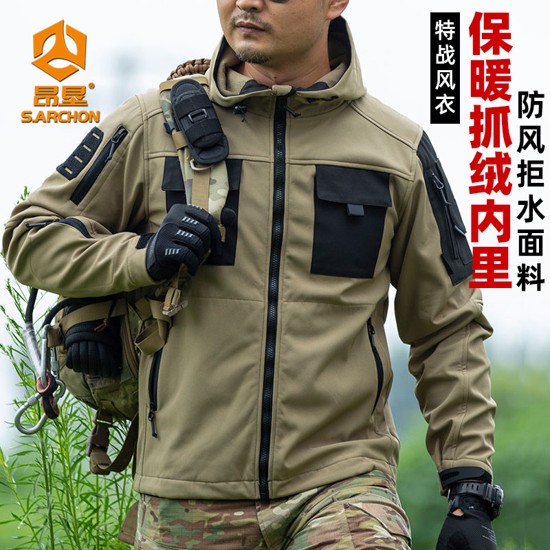 男秋冬季修身软壳战术夹克加绒保暖冲锋衣户外套军迷防水连帽潮流