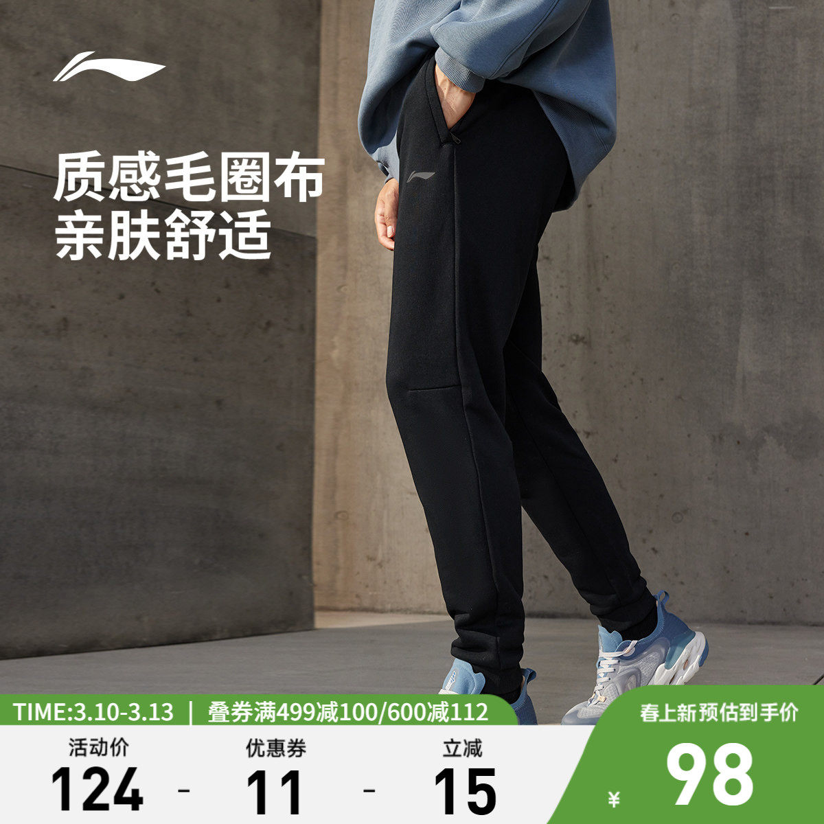 李宁运动裤男款2026新款男士裤子跑步长裤束脚休闲卫裤青少年加绒