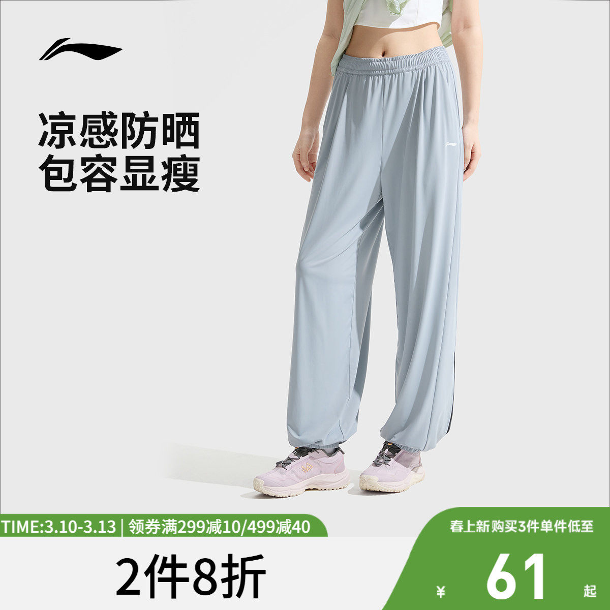 李宁运动裤女士夏季新款健身跑步长裤冰丝速干裤休闲裤裤子防晒裤