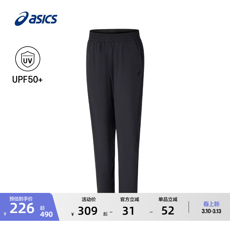 ASICS亚瑟士新款男子抗UV运动长裤防晒梭织透气松紧系带跑步长裤