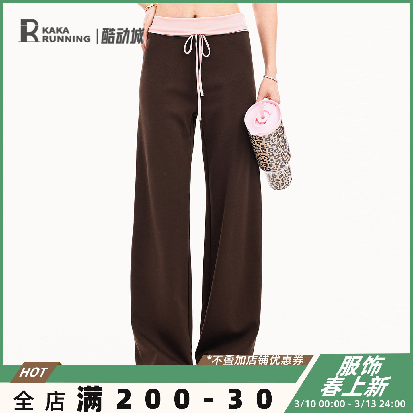 奔跑吧卡卡运动长裤女宽松抽绳高腰直筒休闲瑜伽健身跑步训练撞色