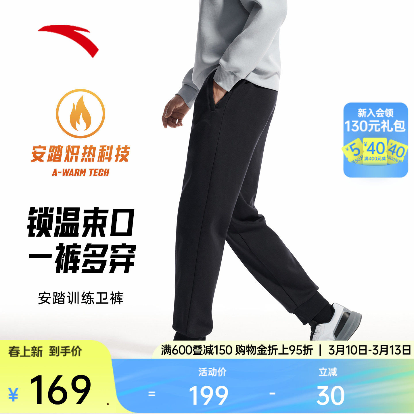 安踏运动裤男士春季新款直筒裤休闲卫裤黑色跑步长裤挺括针织裤子