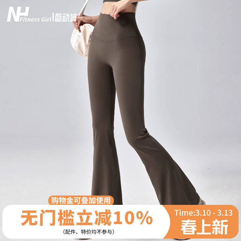 健身女孩高腰微喇瑜伽裤裸感提臀跑步训练长裤高弹外穿显瘦运动裤