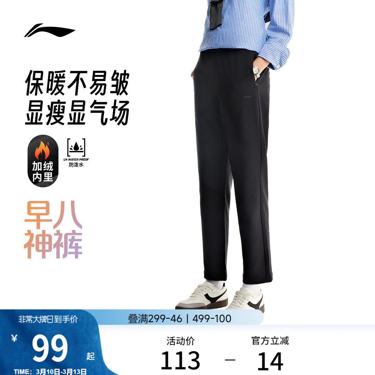 李宁运动裤男款裤子秋冬加绒男士直筒卫裤青少年宽松加厚跑步长裤