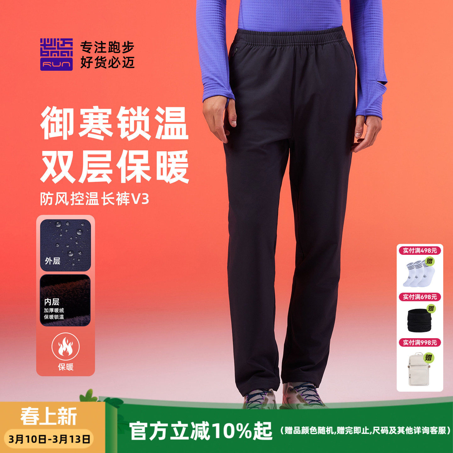 必迈防风控温长裤V3秋冬户外跑步长裤男女通勤保暖加绒加厚运动裤