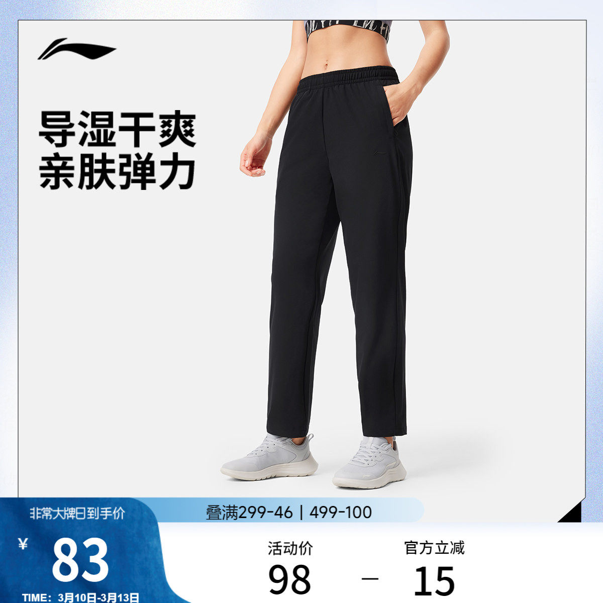 李宁运动裤女士训练黑色裤子健身跑步长裤弹力透气梭织运动速干裤