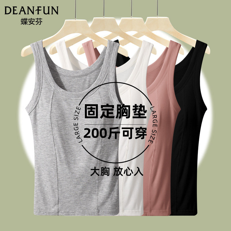 蝶安芬加肥加大码吊带背心女夏外穿带胸垫胖mm200斤打底无袖上衣