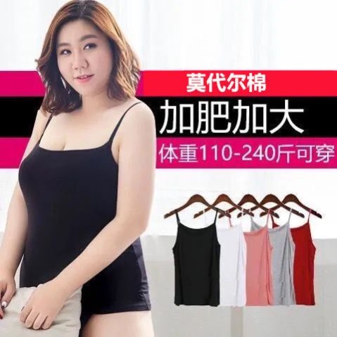 胖mm加肥加大码莫代尔吊带女胖子背心打底衫百搭夏季宽松薄款上衣