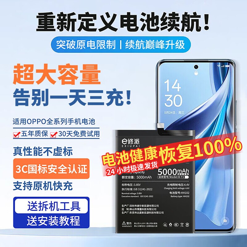 E修派R9SPlus电池A7X适用oppoR9TM a9a5手机R11Plus梦境R11T R9KM Reno4Pro 7SE正品K7版K10 oppoReno10Pro+