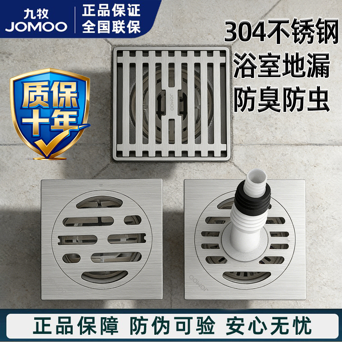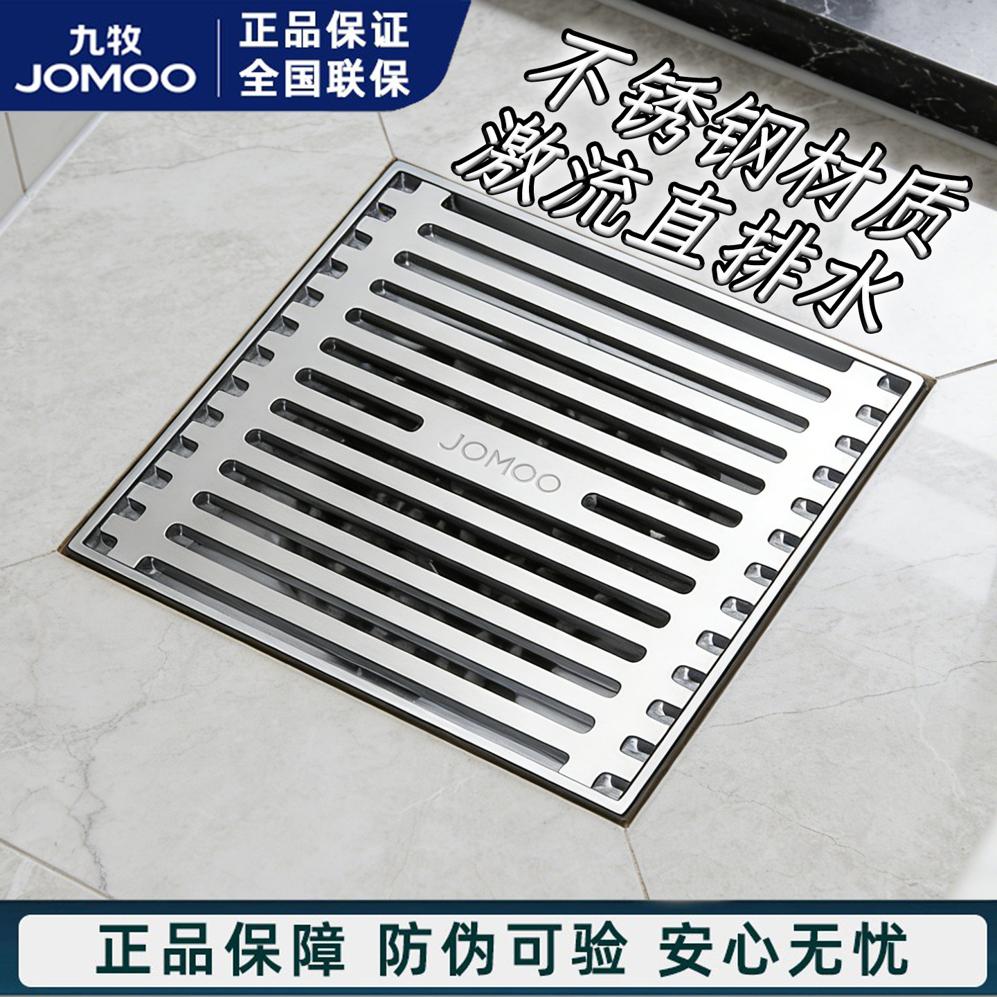 九牧304不锈钢地漏拉丝大排量浴室淋浴地漏防臭虫防反水洗衣地漏
