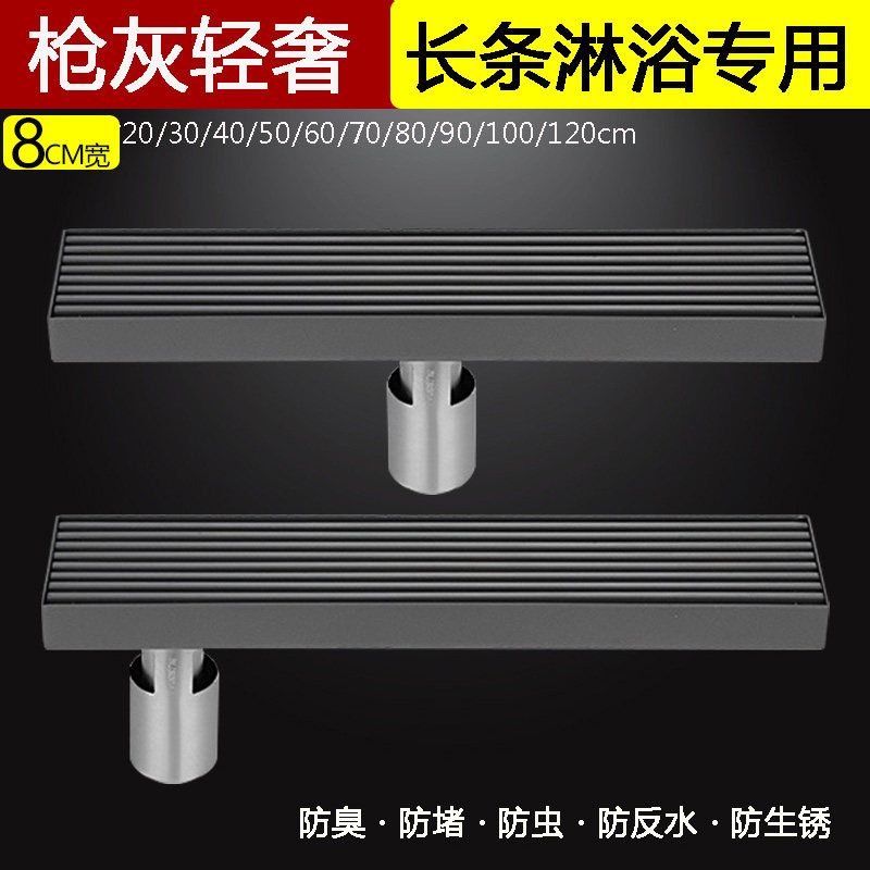 枪灰色长条淋浴地漏加长防臭卫生间大排量侧排加厚定制304不锈钢