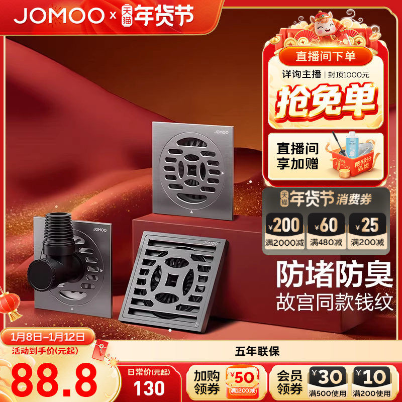 九牧不锈钢地漏加厚防臭防虫放返味防溢水大排量干湿通用淋浴地漏