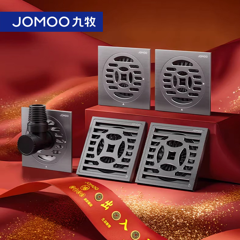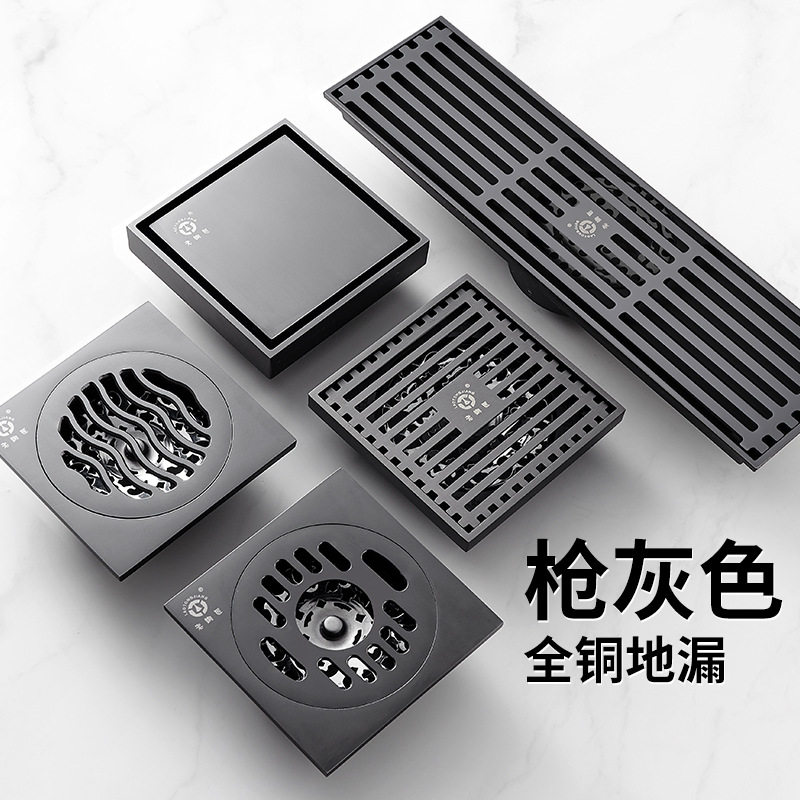 九牧官方旗舰店枪灰黄铜地漏防臭大流量淋浴地漏卫生间家用下水道