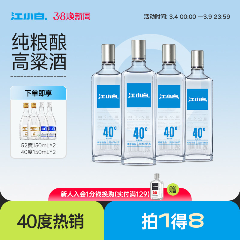 江小白银盖40度500ml*4瓶高粱酒纯粮食酒白酒大瓶装清香酒整箱装