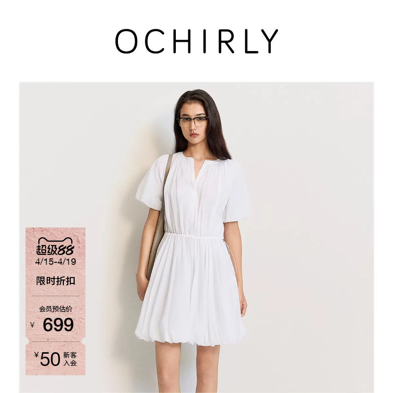 OCHIRLY欧时力 轻薄纯棉花苞裙A字连衣裙裙子收腰抽绳夏