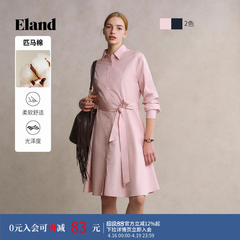 【匹马棉】Eland衣恋连衣裙女a字系带收腰显瘦衬衫领长裙夏季款