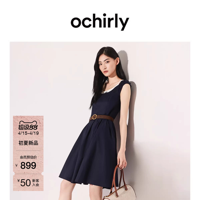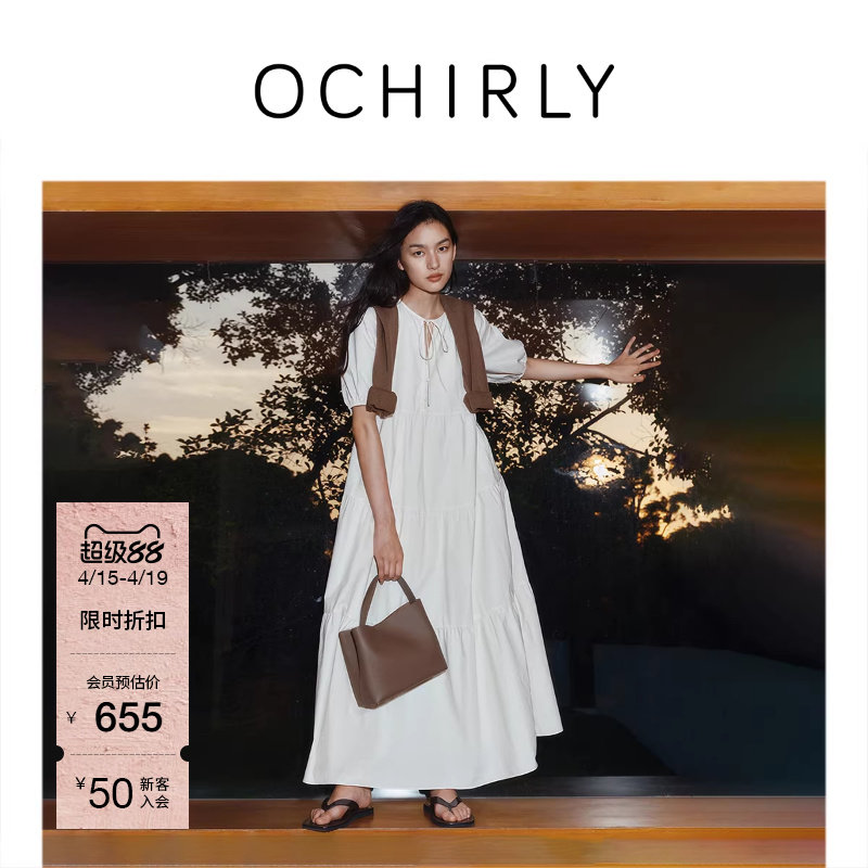 【新品】OCHIRLY欧时力 连衣裙2026夏季假两件纯棉收腰A字裙子