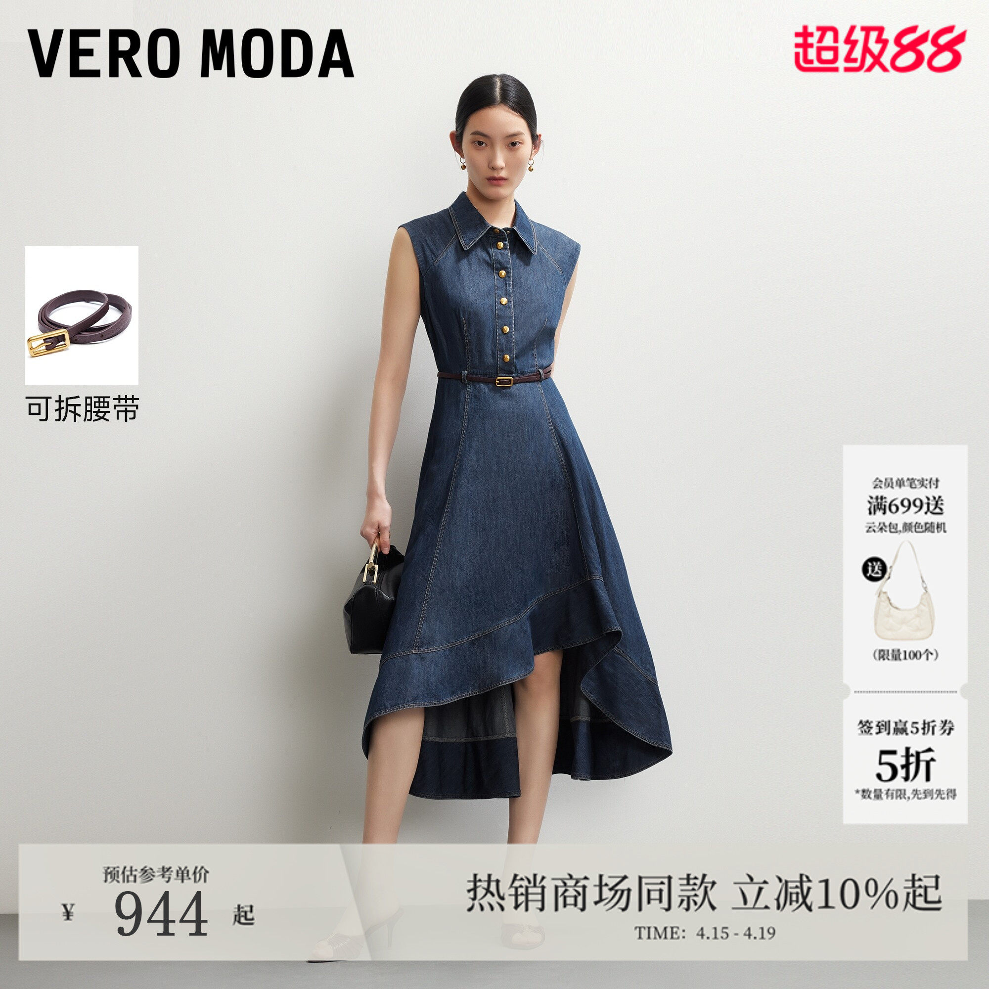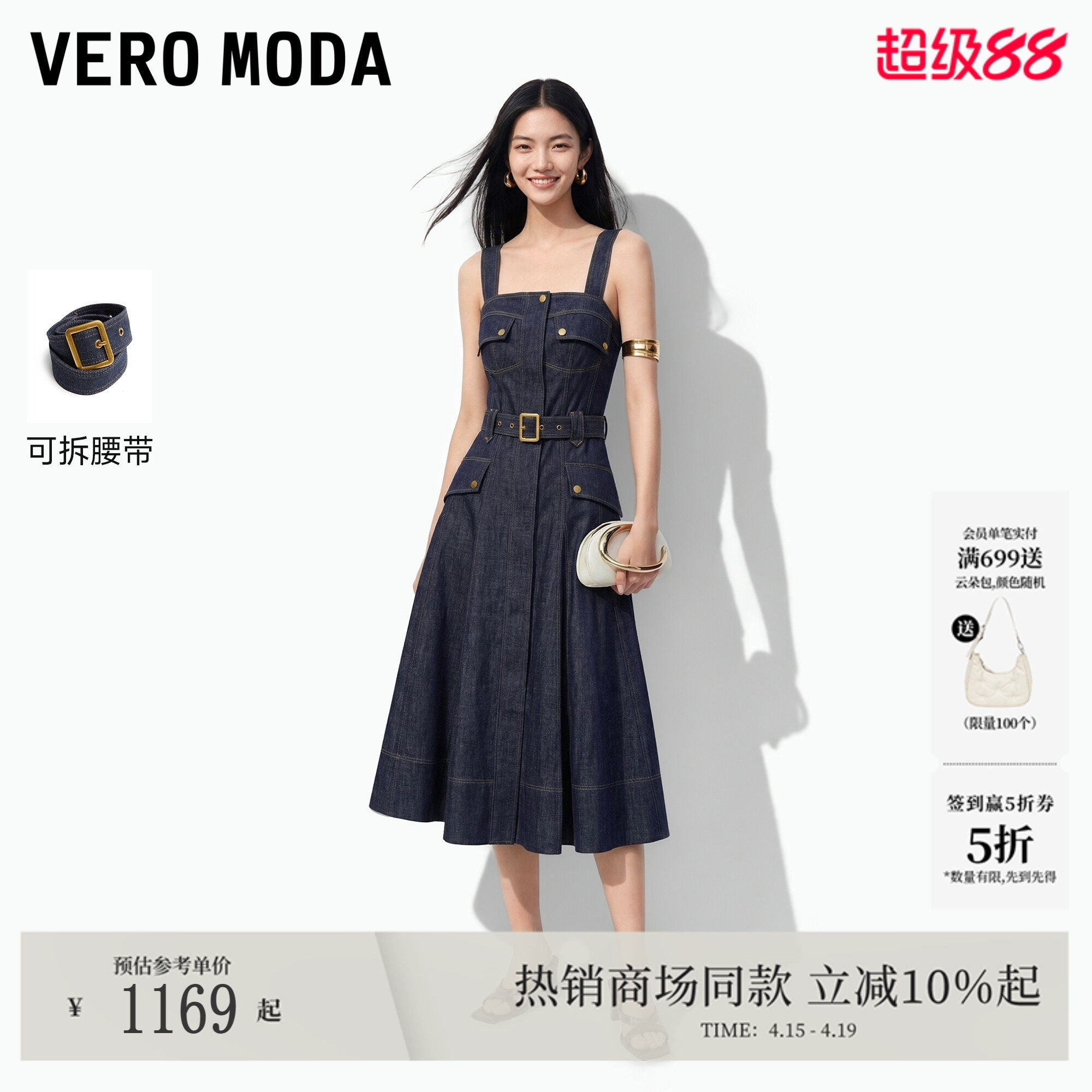 Vero Moda连衣裙2026夏季新款纯棉可拆腰带A字牛仔裙326242016