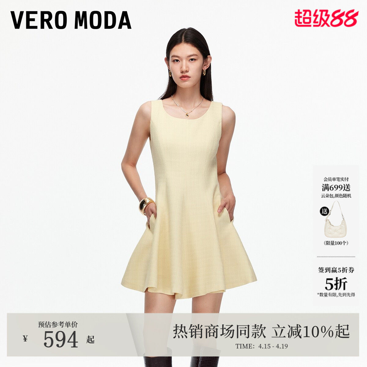 Vero Moda连衣裙2026春夏千金风含棉拉链A字裙百搭32537A031