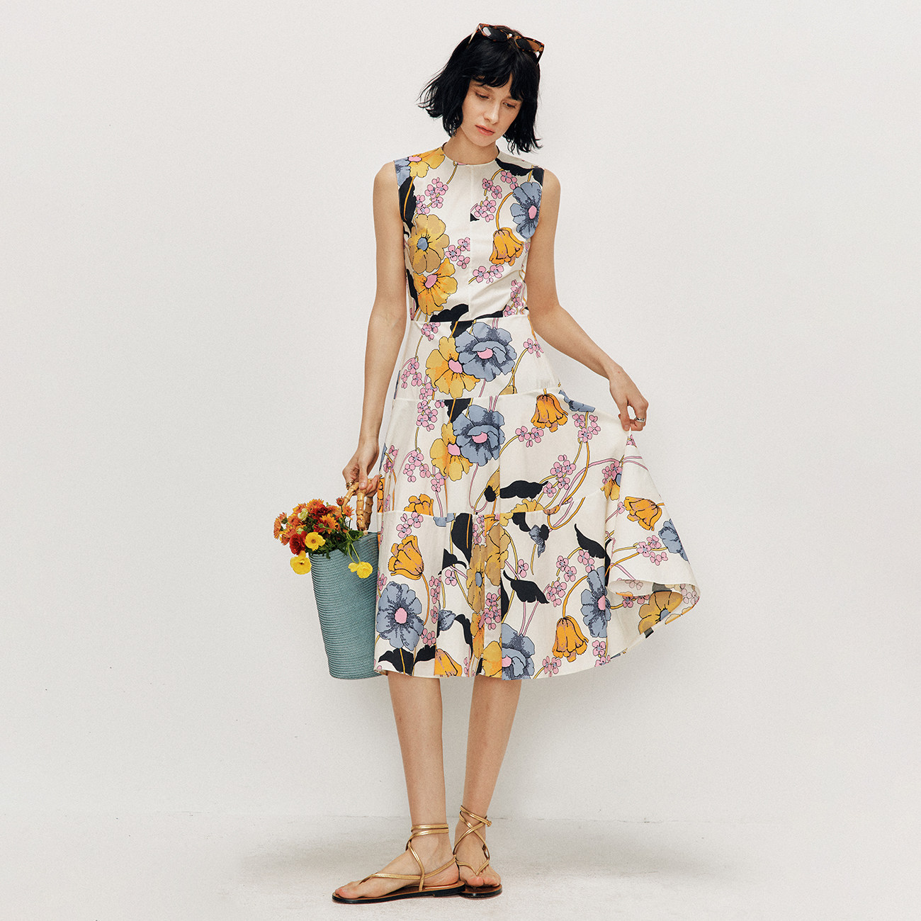 【迷失花海】100%高支数精梳棉连衣裙 度假风无袖收腰A字印花裙