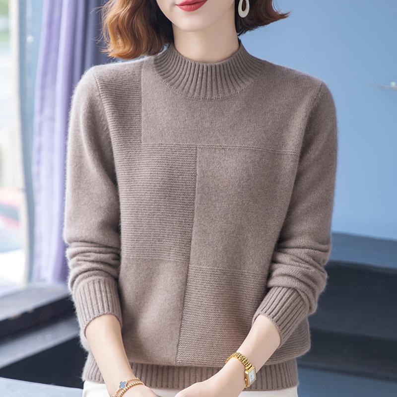 羊毛衫女秋冬季半高领毛衣宽松加厚保暖中年妈妈装针织上衣打底衫