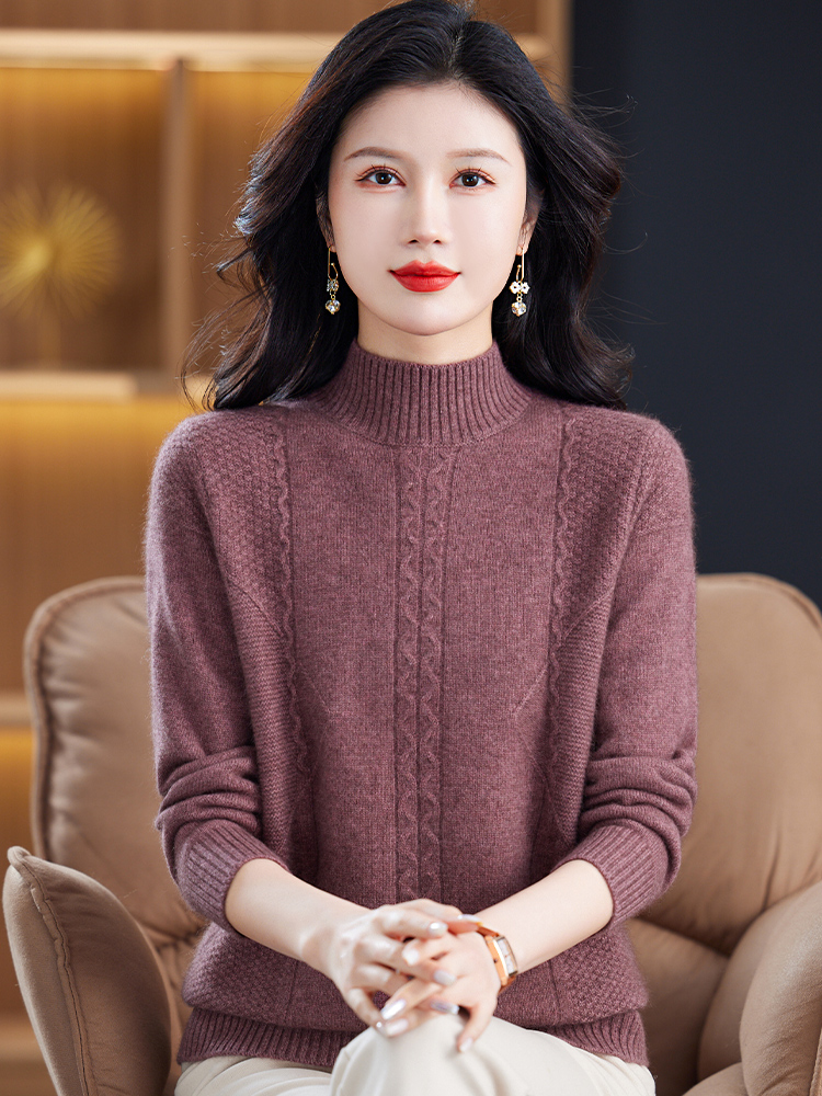 中年妈妈装高端100%纯羊毛绒衫半高领加厚毛衣纯色大码针织打底衫