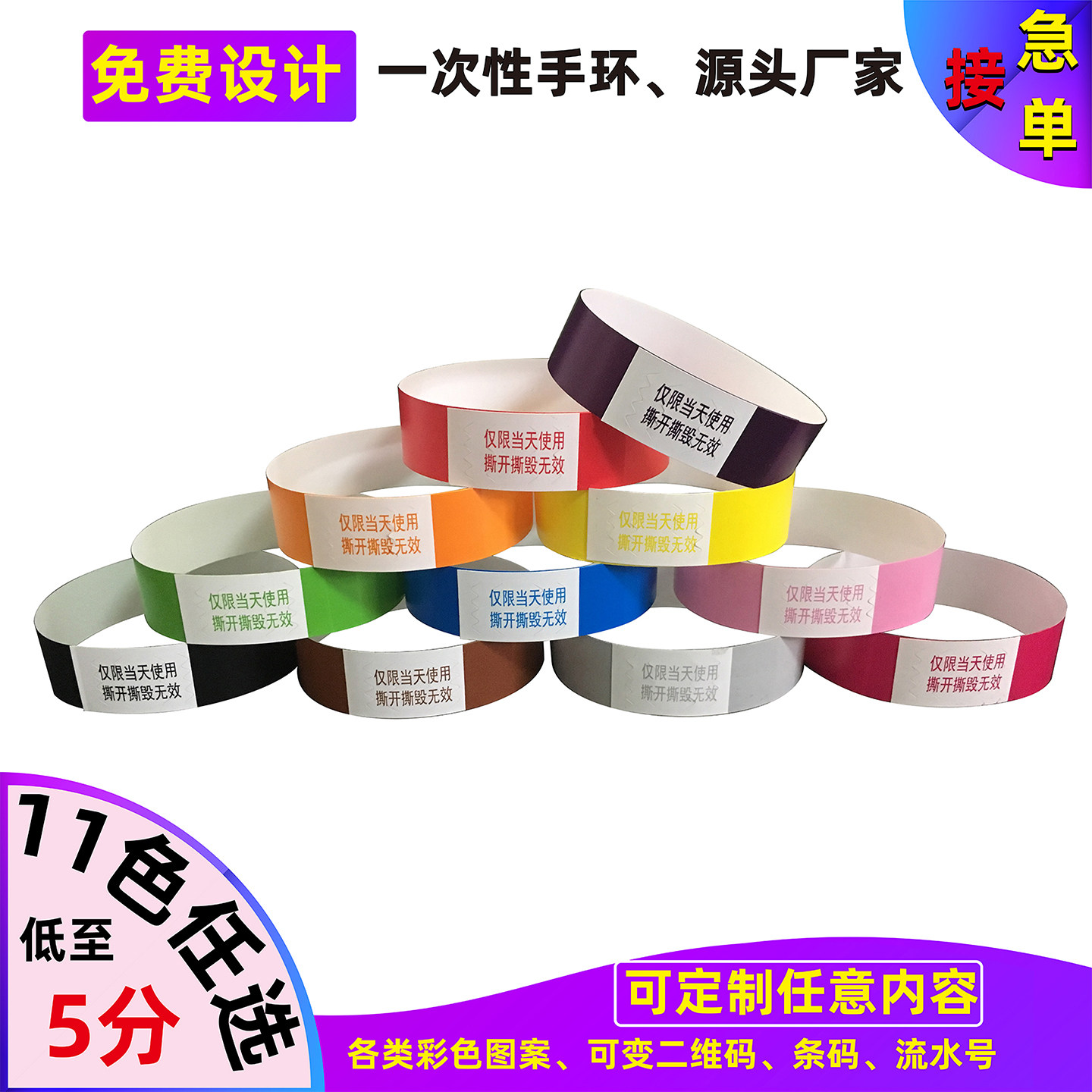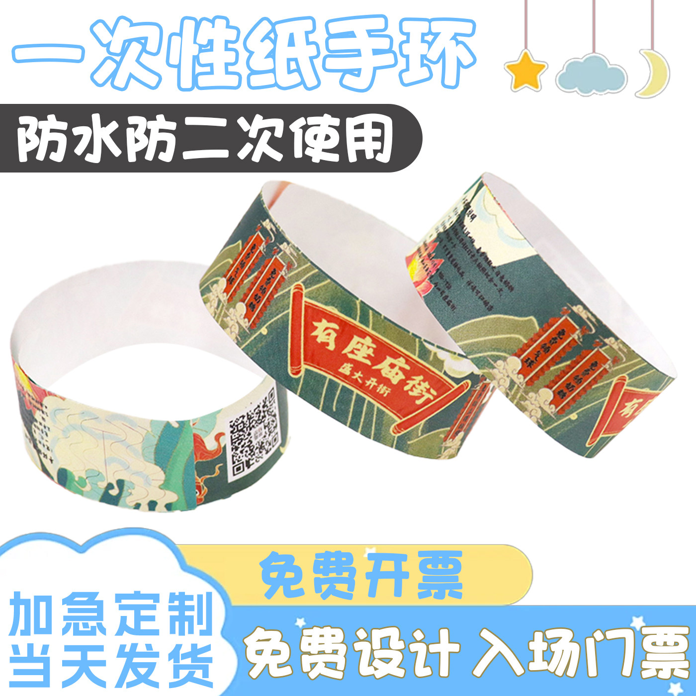 纸质手环一次性杜邦纸手带定制酒吧会议演唱会入场门票识别带防水