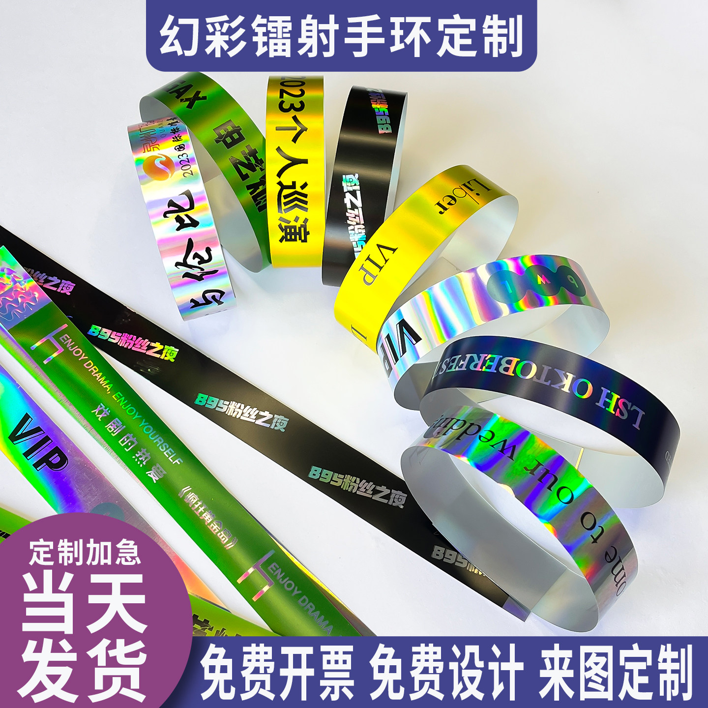 手环定制炫彩镭射一次性手腕带会议门票防水识别手带反光酒吧夜场