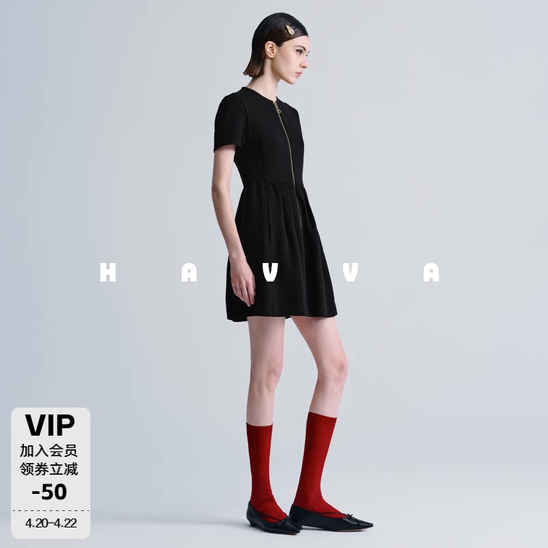 HAVVA简约气质修身A字圆领短袖连衣裙短款女裙子2026春夏Q3-2066