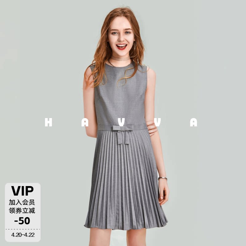 HAVVA百褶A字连衣裙女修身显瘦通勤垂感轻熟风裙装2026春夏Q33382