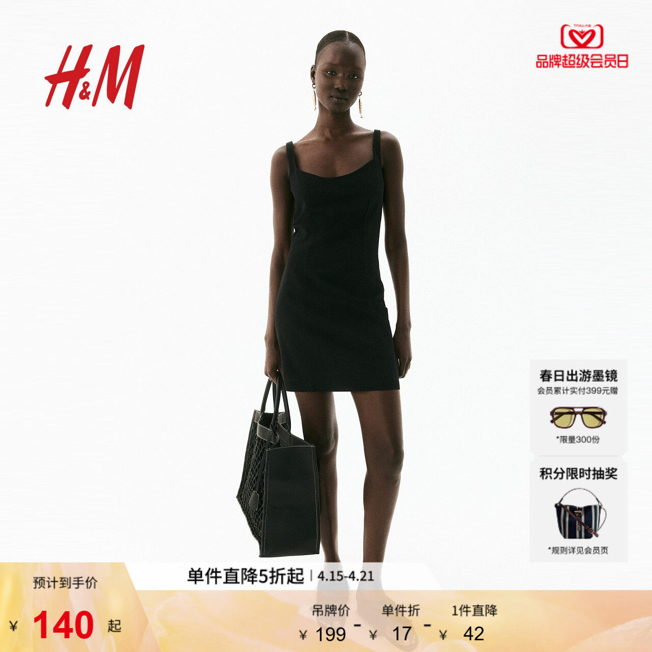 HM女装连衣裙夏季时尚吊带修身迷你无袖A字裙背心式连衣裙1289754