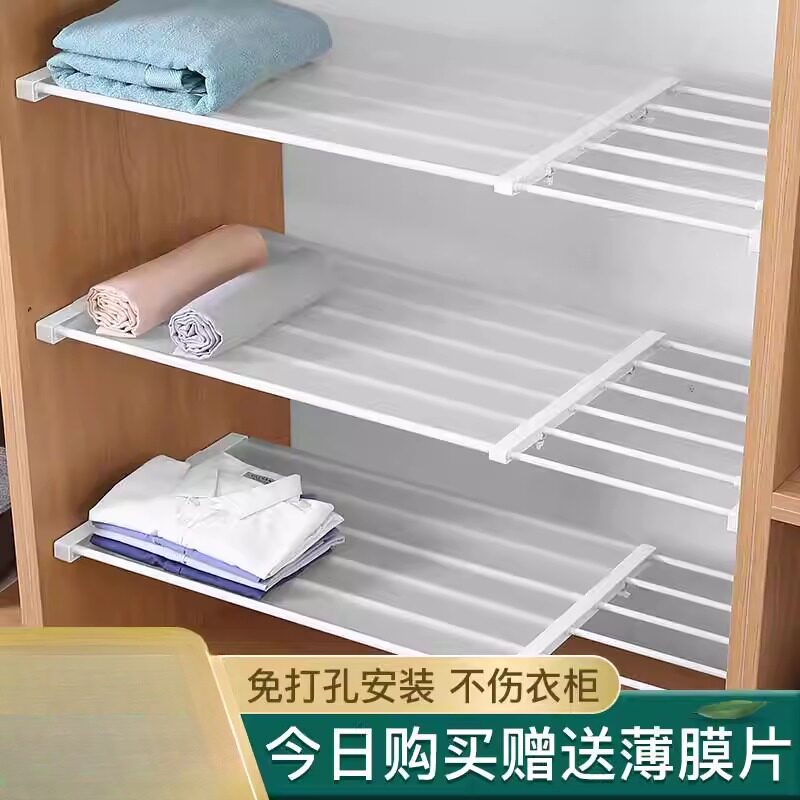 免钉可伸缩衣柜收纳分层隔板隔层橱柜内宿舍层架置物架柜子整理架