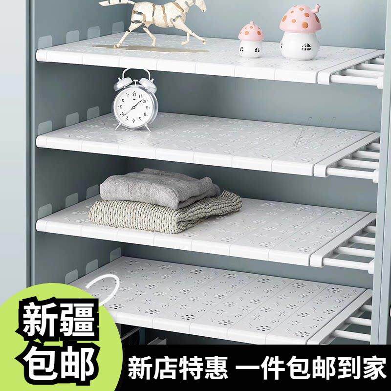 新疆包邮衣柜收纳分层隔板免钉置物架橱柜鞋柜分隔层宿舍伸缩整理