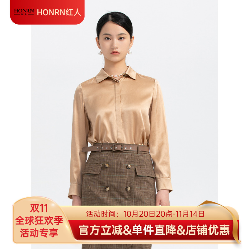 HONRN/红人气质桑蚕丝真丝长袖正肩垂感衬衫上衣女早秋HH33OC080