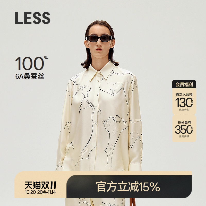 【0压系列】LESS春手绘马蹄莲线条宽松桑蚕真丝长袖衬衫2O2213400