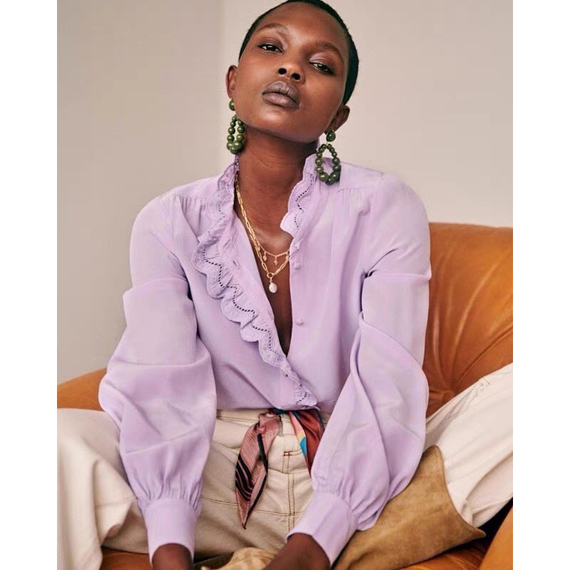 2025秋季新款 重磅真丝长袖衬衫暗门襟桑蚕丝衬衣紫色方领时尚衫