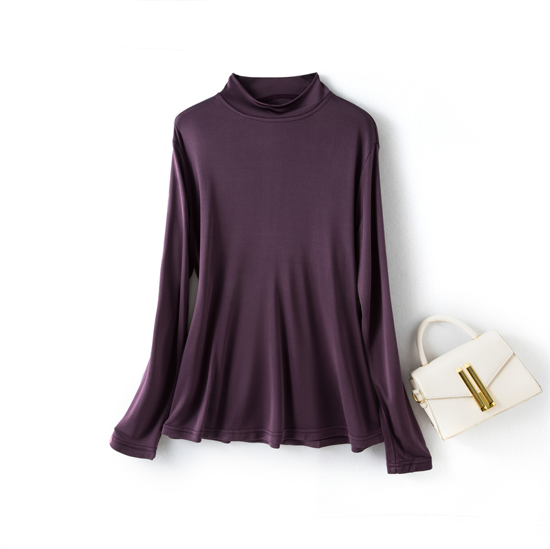 真丝长袖T恤女双面针织桑蚕丝半高领打底衫肌底衣妈妈装大码秋冬
