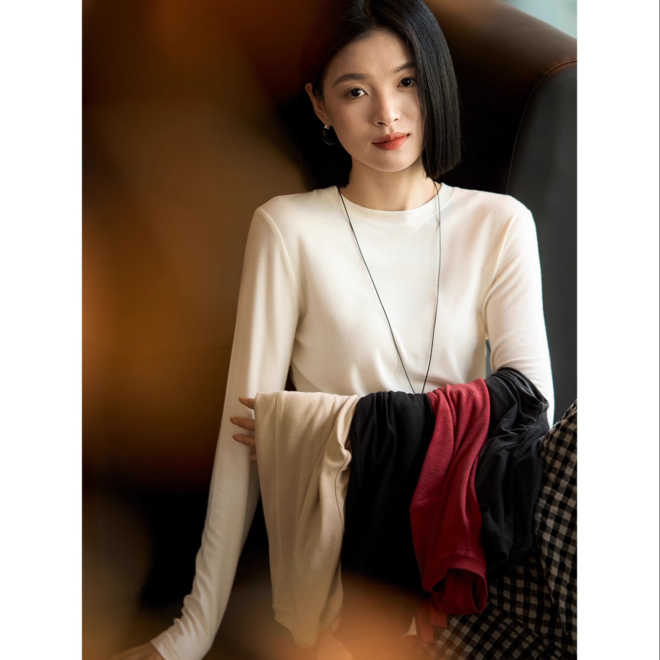 *WTX07069 茉莉雅集 保暖舒适高支棉含真丝绒感打底半高领长袖T恤