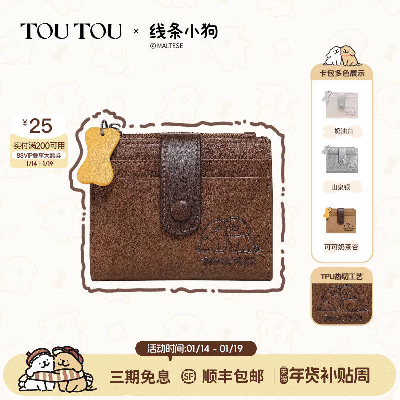 新年礼物TOUTOU线条小狗男士钱包卡包一体证件收纳零钱包护照夹女