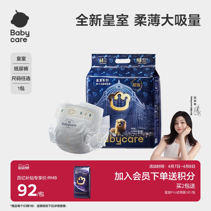 babycare皇室狮子王国纸尿裤超薄透气婴儿男女宝宝尿不湿尿片任选