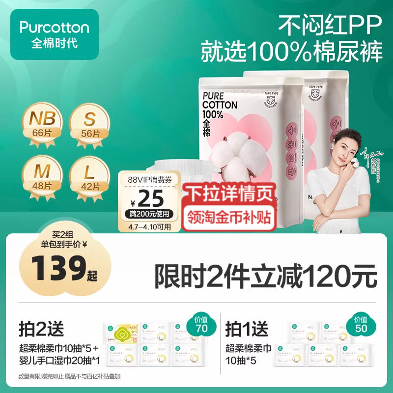 全棉时代新生儿纸尿裤超薄透气婴儿男女宝宝尿不湿尿片任选NB-3XL